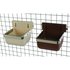 U kunt ook de montageplaat op een houten wand schroeven en vervolgens schuift u het bakje van boven naar beneden in de houder. Op het eind zorgt het veertje voor de vergrendeling en zit het bakje vast. Door het veertje in te drukken en het bakje om hoog te schuiven gaat het bakje weer los. De 2 kleurmogelijkheden van deze bakjes zijn gemaakt om bij gebruik voor water en voer de beide bakjes uit elkaar te houden.
